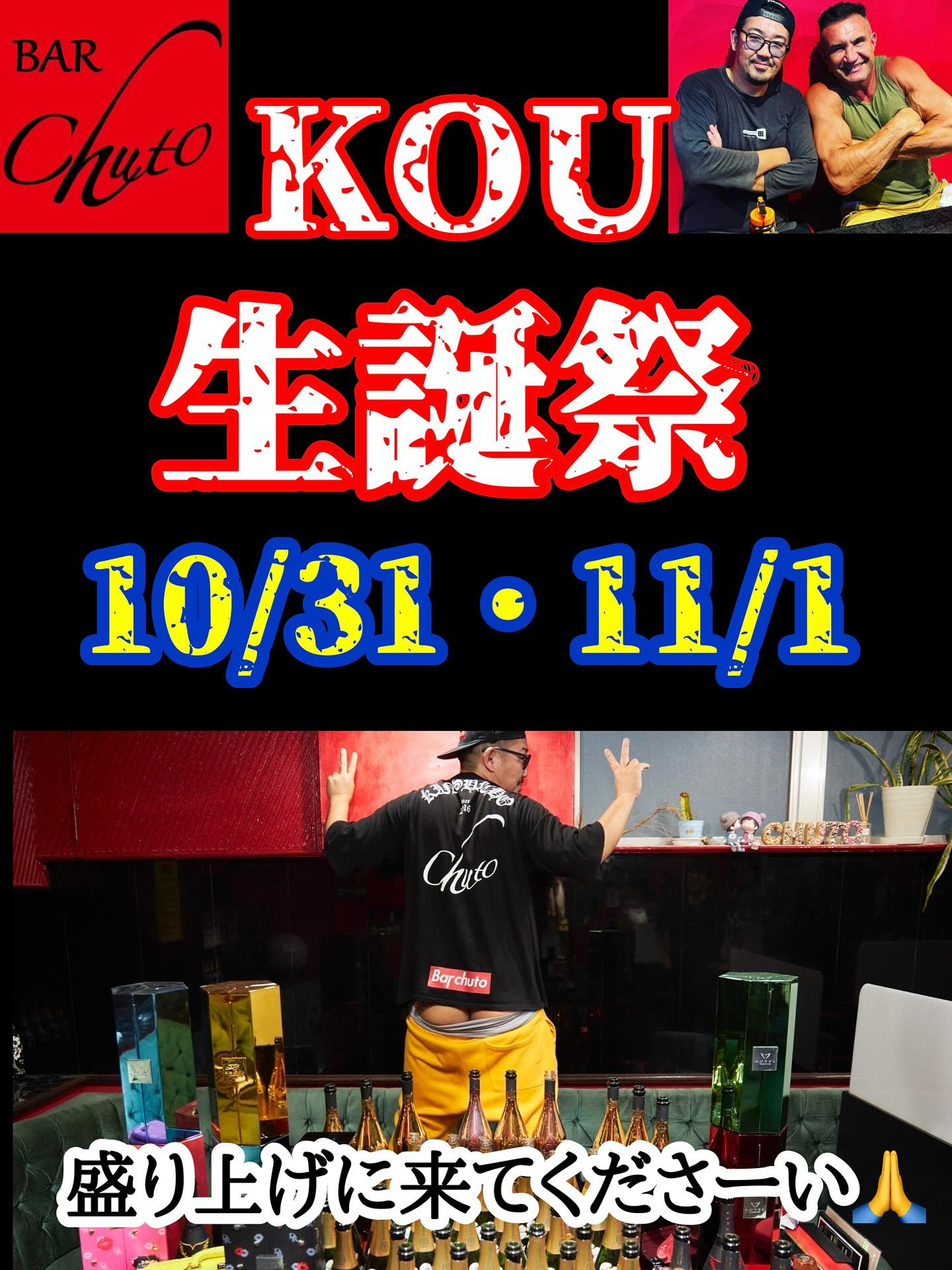 こんばんみー! Chutoです♡ 久々のちゃんとした投稿失礼いたします♂️ 6月まっこ 8月しーちゃん と新メンバーのバースデーイベントにも多数の方々がお祝いしていただきありがとうございました そして10月のKOUのバ […] どーも!Chutoです! 皆様いかがお過ごしでしょうか? 夏の暑さも落ち着いて、涼しくなり、気付けば10月ですね 早いですねー あっとゆーまに今年も終わっちゃうのでしょう! そんな10月といえば… 毎年恒例ではございます […] ただいまwebサイトを制作中です。完成まで今しばらくお待ち下さい。